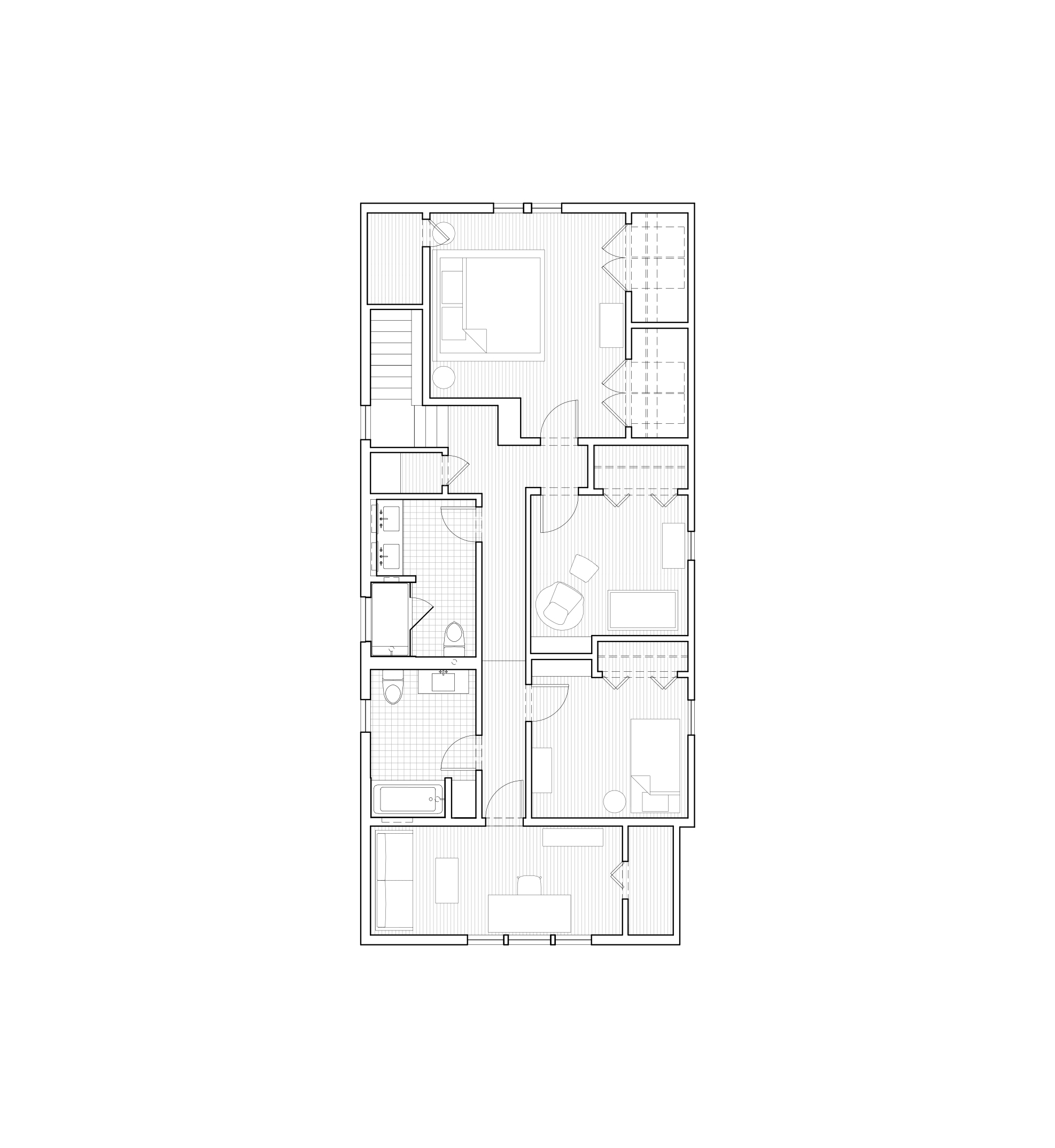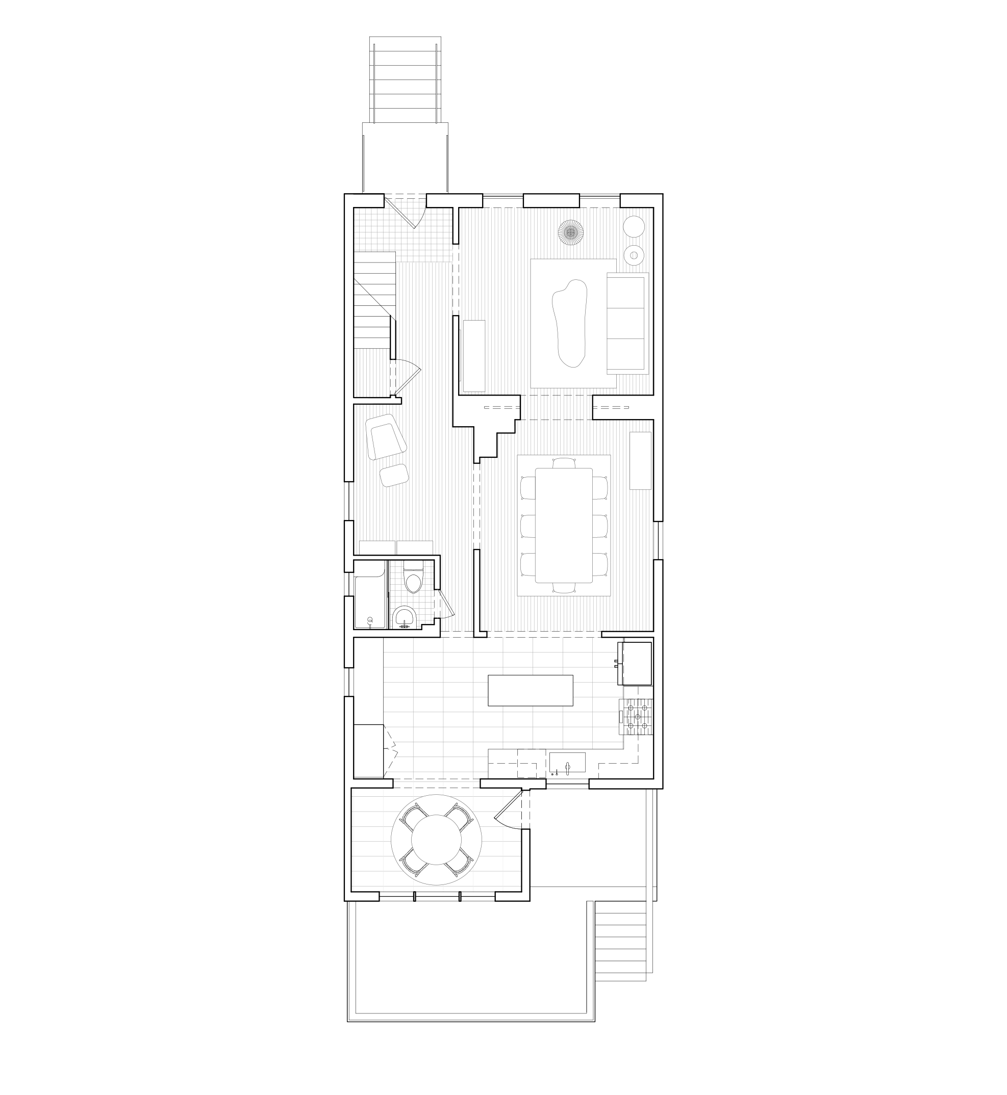 The renovation was an opportunity to refine and simplify the layout in order to maximize the space. An ancillary stair was removed freeing up space to enlarge the kitchen and establish clear sight lines throughout the ground level. On the upper level, the roof was dormered and walls were reshuffled making room for an additional bedroom and bathroom. The master bathroom was gutted and enlarged. Finishes were updated throughout.